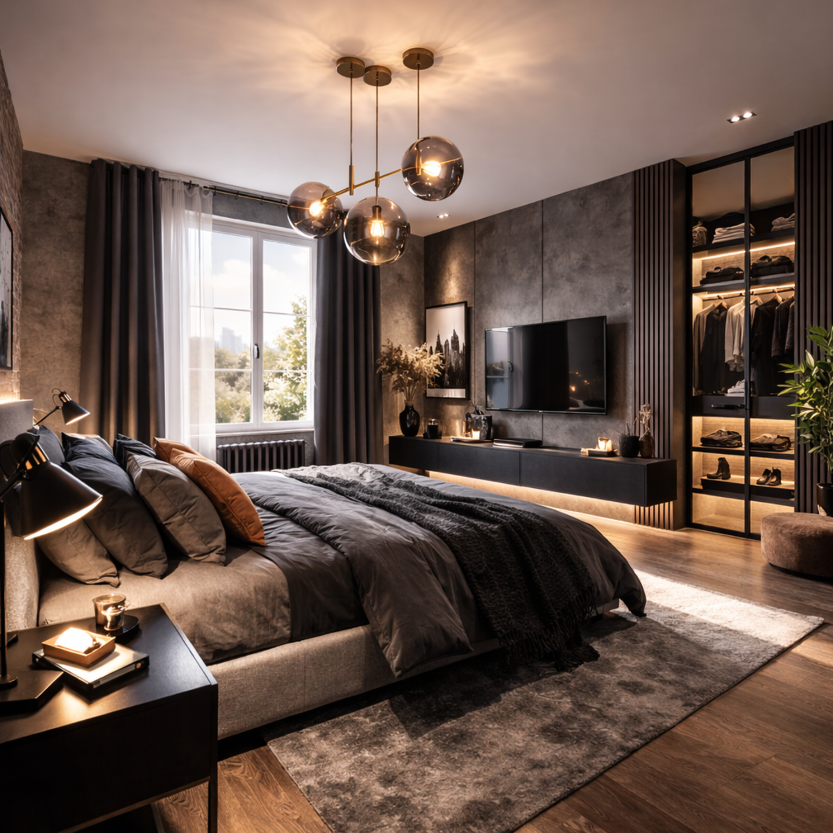 Vous souhaitez une rénovation de chambre avec une ambiance contemporaine (noir, bois, éclairage indirect, matériaux premium) ?